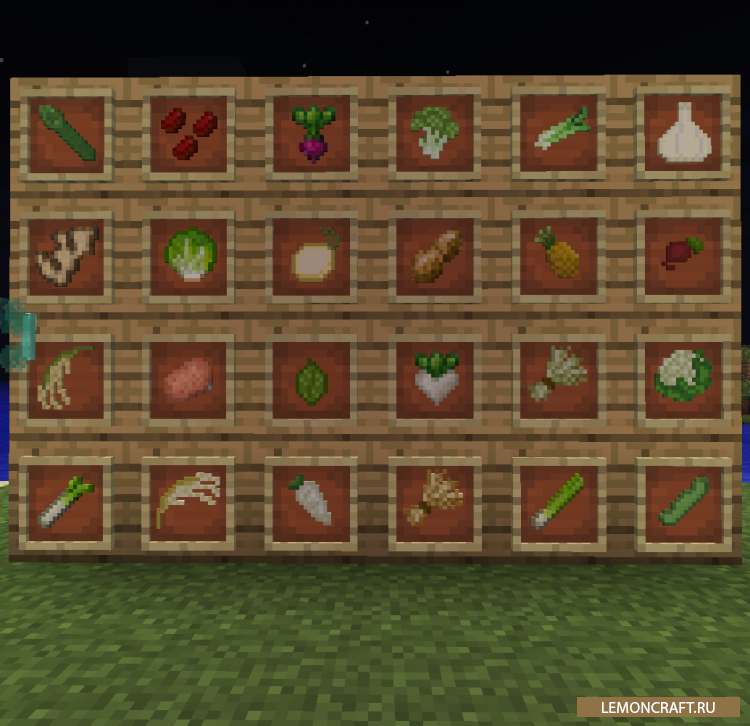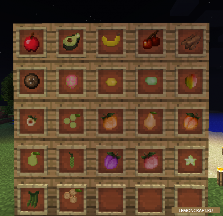 Мод HarvestCraft добавит в игру огромное количество разнообразной пищи, которая будет выглядеть очень реалистично. Так как в стандартной версии игры еды не так уж и много, авторы мода решили исправить данный недочет. Большое количество овощей и фруктов придадут игре больше реалистичности. Все фрукты и овощи нужно будет вырастить, это еще один плюс мода для тех кто любит заниматься фермерством. Весь процесс получения новой еды займет некоторое время, но поверьте, это того стоит.